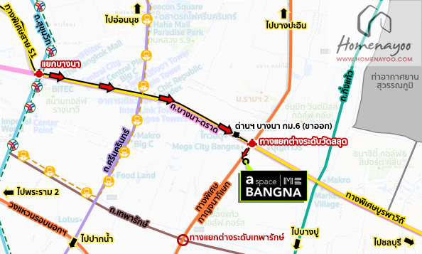 การเดินทาง ทางพิเศษสาย S1 ทางออกไปพระราม 2 เข้าสู่ทางพิเศษกาญจนาภิเษก ⇒ เบี่ยงออกเข้าสู่เลียบทางพิเศษ ตรงไปอีก 400 เมตร ถึงโครงการ a space ME Bangna *ใกล้ Mega บางนา