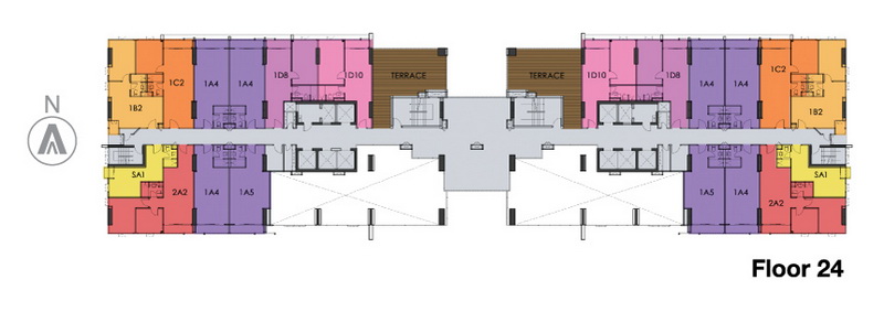 แปลนชั้น 24 ของอาคาร A เป็นชั้นพักอาศัยและมีพื้นที่นั่งเล่นภายในอาคาร