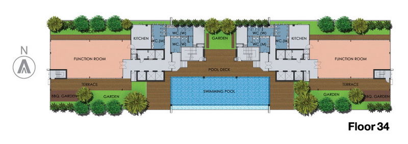 แปลนชั้น 34 ของอาคาร A เป็นพื้นที่ส่วนกลางและห้องงานระบบ