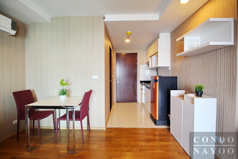 เข้ามาด้านในส่วนแรกจะเป็นห้องครัว ด้านขวามือคือห้องน้ำ โดยห้องนอนที่อยู่ด้านในสุดจะมีประตูกั้นด้วยกระจก ดังนั้นแสงธรรมชาติสามารถส่องเข้ามาจากทางระเบียงมาถึงหน้าห้องได้ ห้องจึงดูสว่าง