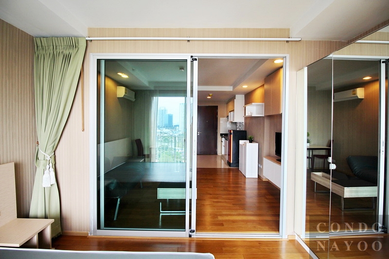 การออกแบบฟังก์ชั่นภายในถือว่าครบครัน ขนาดห้องเป็นห้องหน้ากว้างทำให้การจัดวางเฟอร์นิเจอร์วางได้ลงตัว ห้องดูกว้างและโปร่งเนื่องจากมีระเบียงห้องที่ประตูเป็นประตูกระจกทำให้แสงธรรมชาติส่องเข้ามาในห้องได้ ห้องนั่งเล่นกว้างแม้จะเป็นห้องแบบ 1 ห้องนอน ห้องนั่งเล่นก็สามารถรองรับแขก 5-6 คนได้สบาย