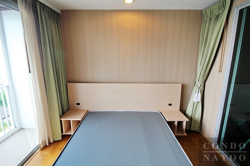 ภายในห้องนอนจะกว้างและสว่าง เพราะอยู่ติดกับระเบียงทำให้มีแสงธรรมชาติส่องเข้ามาในห้อง