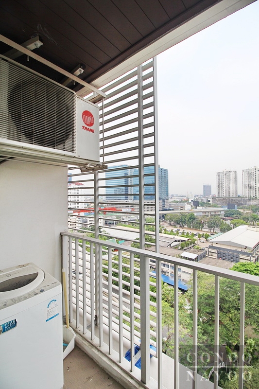ภายนอกวางเครื่องซักผ้า ด้านบนแขวนคอมเพลสเซอร์แอร์ได้ มีระแนงช่วยบังเพื่อความสวยงาม