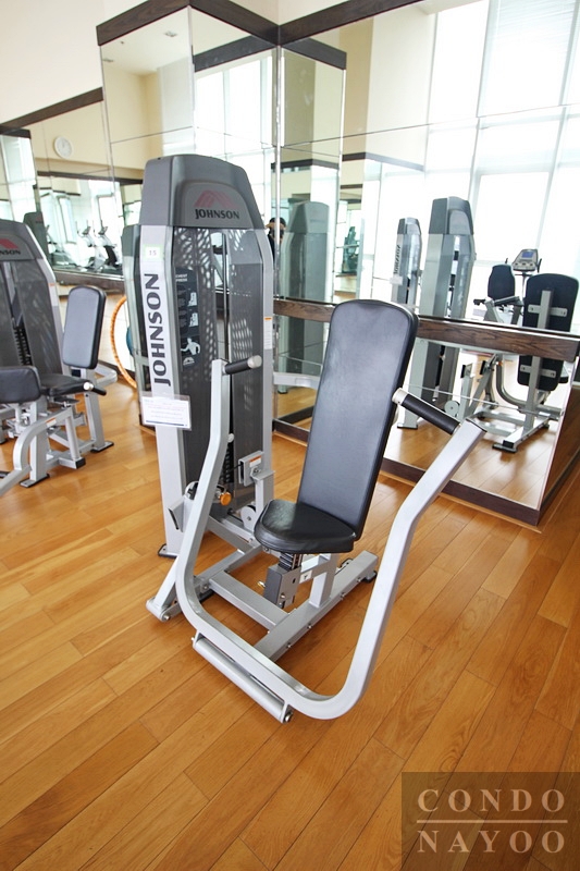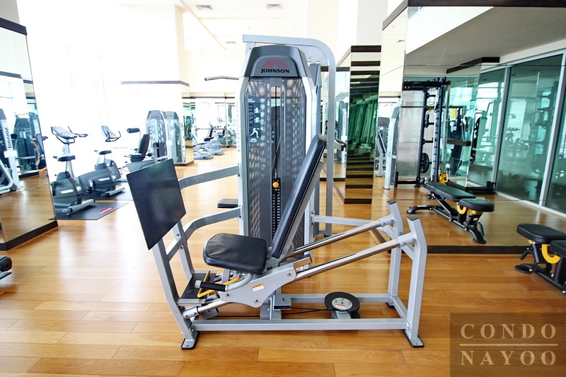 อีกฝั่งจะเป็นห้องฟิตเนส ภายในกว้างและมีอุปกรณ์หลากหลาย ทั้งสำหรับเวทและคาดิโอ มีลู่วิ่งสำหรับออกกำลังกาย 2 เครื่อง และดัมเบล 1 ชุด