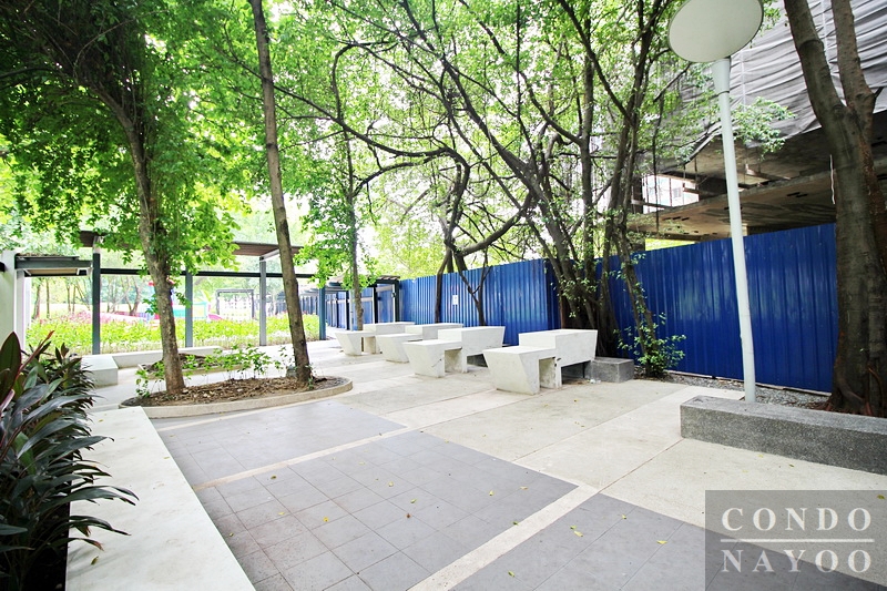 มุมนี้มีทางเดินและมุมนั่งเล่น ทางเดินไปยังอาคารจอดรถก็จะขนานกับพื้นที่สวนตรงไปจนถึงด้านในสุดของโครงการ
