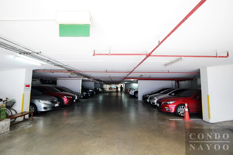 จากด้านหน้าอาคาร A จะมีทางเดินไปยังอาคารจอดรถ โดยมีหลังคาให้ตลอดแนว