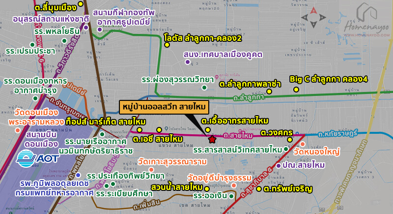 All Suite สายไหม ทาวน์โฮมพร้อมอยู่ ตั้งอยู่ในซอยสายไหม 31 แขวงสายไหม เขตสายไหม กทม. ใกล้บิ๊กซี, ตลาดวงศกร, รร.สารสาสน์วิเทศสายไหม, รพ.สายไหม และ สนามบินดอนเมือง