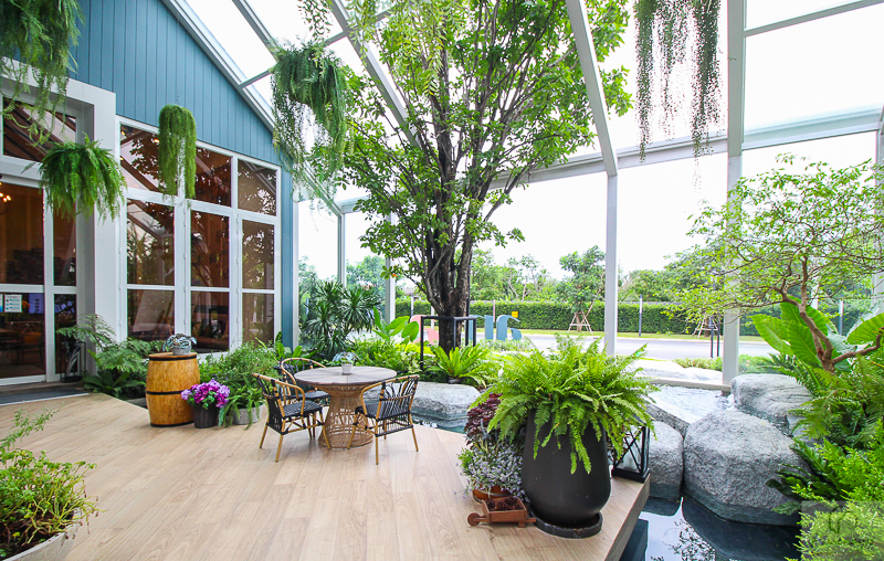 เดินเข้ามาส่วนแรกจะเป็น Glass House มีสวนตกแต่งรอบๆไว้นั่งพักผ่อนได้