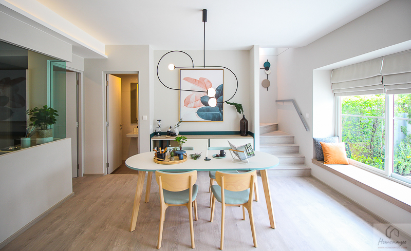 ติดกันเป็นส่วนรับประทานอาหาร วางโต๊ะขนาด 4 ที่นั่งให้ดู
