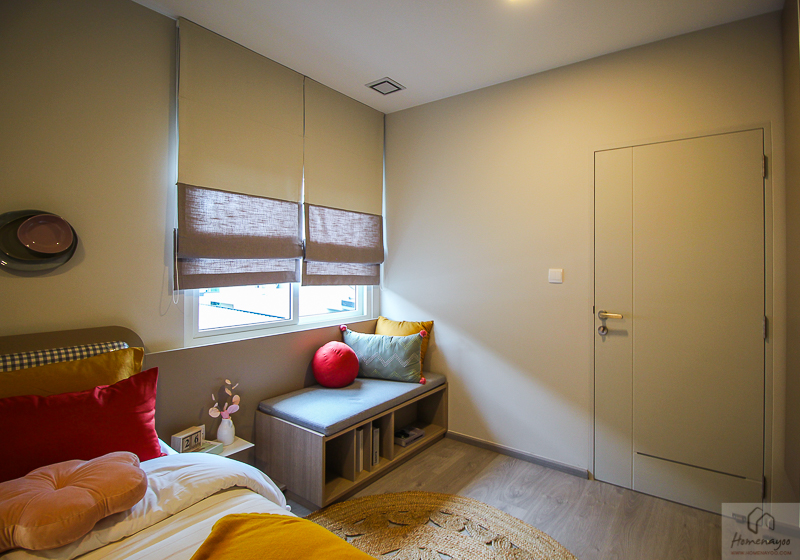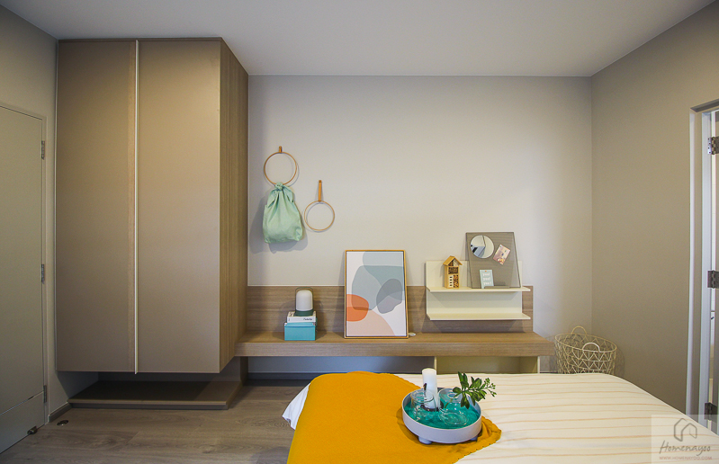 ข้างเตียงมีพื้นที่ไว้วางโต๊ะทำงาน หรือเป็นมุมนั่งเล่นได้