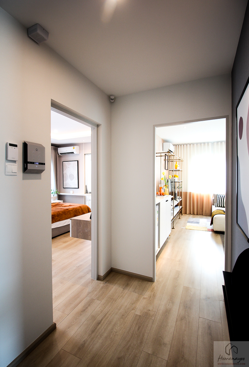 มองไปอีกฝั่งจะเป็นห้องนอนทั้ง 2 ห้อง พื้นชั้นบนจะเป็นลามิเนต
