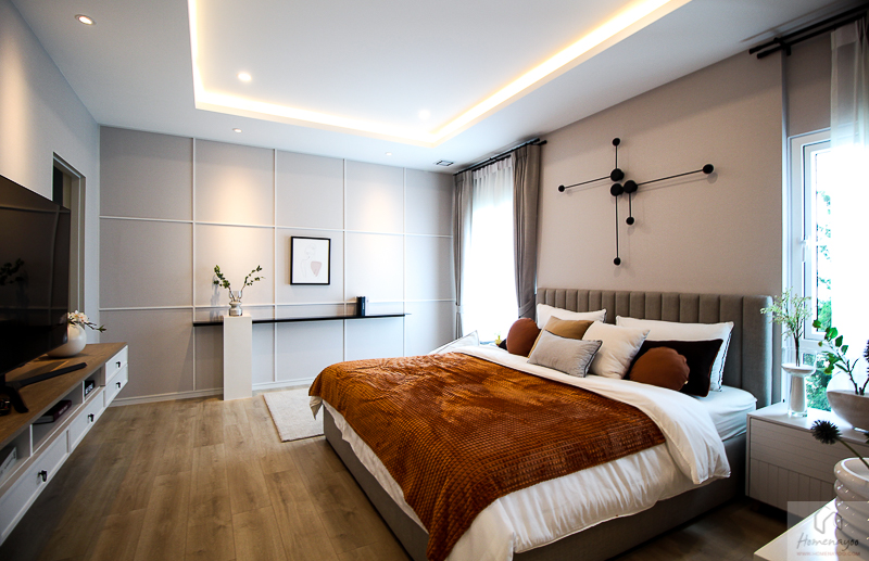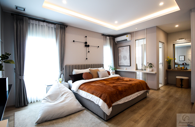 ห้อง Master Bedroom ตำแหน่งจะอยู่โซนหน้าบ้าน ภายในห้องมีพื้นที่มาให้เยอะดี