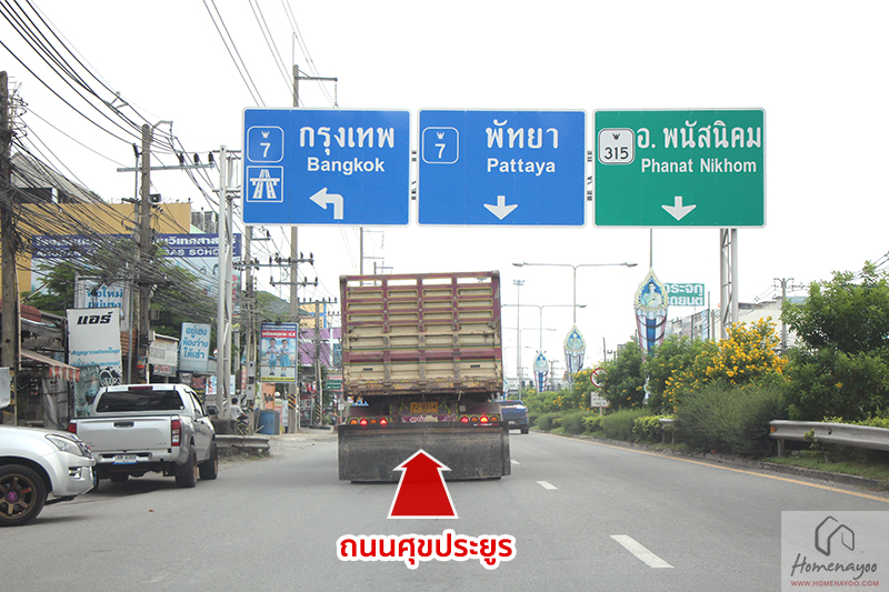 ภาพประกอบการเดินทาง เราใช้ถนนศุขประยูร ฝั่งมุ่งหน้าไป อ.พนัสนิคม โดยเริ่มจาก Home Pro ตรงข้ามเป็น Jas Village อมตะ ถัดไปหน่อยเป็น Robinson ชลบุรี