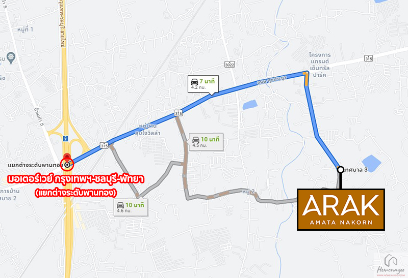 โครงการ ARAK อมตะนคร ตั้งอยู่บนถนนเทศบาล 3 ต.หนองตำลึง อ.พานทอง จ.ชลบุรี ขับรถจากโครงการออกมา เพียง 2 นาที* ถึงถนนศุขประยูร ถนนเส้นหลักที่ใช้เดินทางไปยังสถานที่สำคัญต่าง ๆ ในย่านนี้ได้สะดวกที่สุด และอยู่ใกล้กับมอเตอร์เวย์ ทำให้เข้ากทม.ได้ง่าย เพียง 1.30-2 ชม.* เท่านั้น
