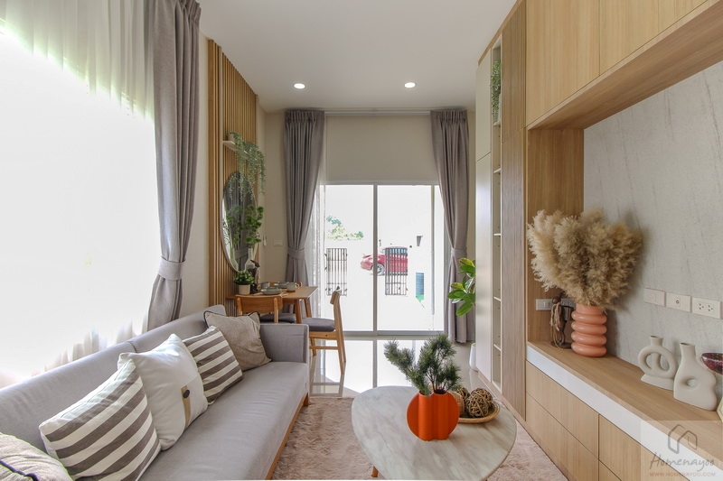 ตอนนี้โครงการมีบ้านตัวอย่างให้ชมเพียง 1 แบบ เป็นทาวน์โฮมสไตล์ Minimal Japanese แต่งง่าย เข้ากับทุกโทนสี ฟังก์ชันครบ เหมาะกับการซื้อเป็นบ้านหลังแรกของวัยเริ่มทำงาน หรือ อยากเปลี่ยนจากการเช่าห้องมาเป็นการซื้อเป็นเจ้าของเอง ที่นี่ก็ตอบโจทย์ ไปดูรายละเอียดแบบเจาะลึกกันต่อได้เลยค่ะ