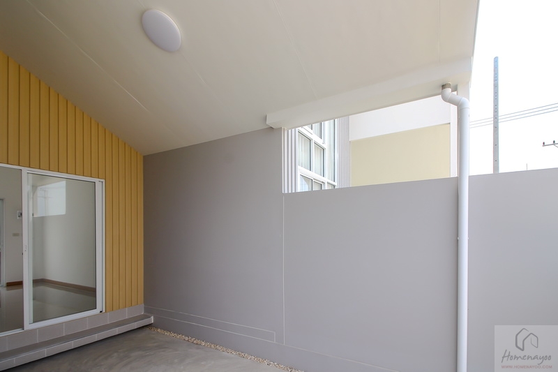 จุดเด่นของบ้านทาวน์โฮมที่นี่คือจะมีการก่อกำแพงทึบกั้นระหว่างบ้านมาให้ที่ความสูง ประมาณ 2 เมตร ได้ความเป็นส่วนตัว ไม่วุ่นวายกับบ้านหลังอื่น ๆ และ มีการติดตั้งรางระบายน้ำฝนมาให้เรียบร้อยแล้วด้วยค่ะ