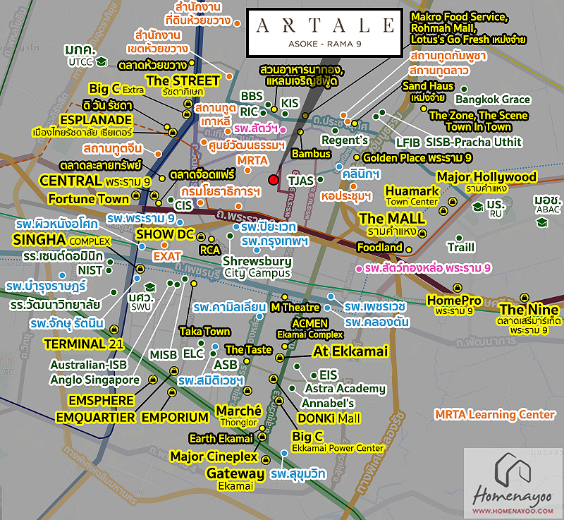 ARTALE อโศก-พระราม 9 ตั้งอยู่บนทำเลศักยภาพใจกลางเมืองพระราม 9 ที่รอบล้อมไปด้วยสถานที่สำคัญและสิ่งอำนวยความสะดวกที่ต้องใช้ในชีวิตประจำของคนทุก Generation อย่างครบถ้วนมาก ๆ