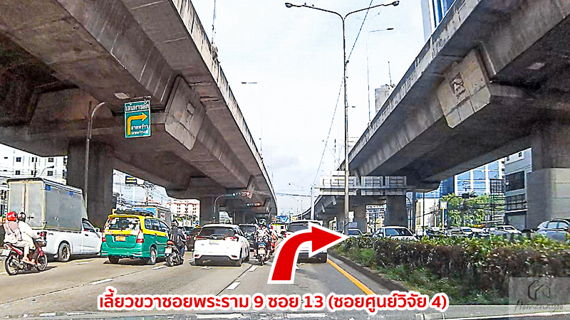 จากนั้นให้เราเลี้ยวขวาเข้าสู่ซอยพระราม 9 ซอย 13 หรือซอยศูนย์วิจัย 4 ตามป้ายทางลัดไปออกซอยลาดพร้าว 48
