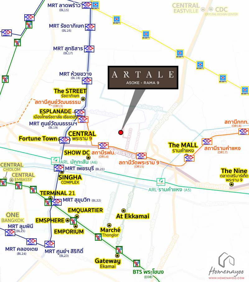 สำหรับโครงการ ‘ARTALE อโศก-พระราม 9‘ จะตั้งอยู่ภายในพระราม 9 ซอย 13 ทำเลที่เชื่อมต่อโดยตรงกับย่านสำคัญหลายย่านทั้ง อโศก, รามคำแหง, เอกมัย, ทองหล่อ, เลียบด่วนฯ, เทียมร่วมมิตร และศูนย์วัฒนธรรมฯ ซึ่งถือเป็นย่าน CBD ที่ดีที่สุดเพียงย่านเดียวของกรุงเทพฯ ทั้งยังเป็นโครงการบ้านที่ใกล้ทางด่วนหลักถึง 2 สาย ใกล้รถไฟฟ้าสายสีส้ม และ Interchange ศูนย์วัฒนธรรม อีกด้วยค่ะ