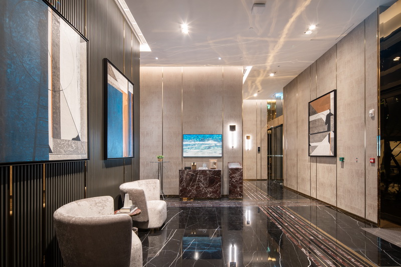 Lobby ฝั่งอาคาร Alpha จะตกแต่ง Interior มาในโทนสีเข้ม เรียบหรู โดยใช้ Material เป็นหินอ่อนสีดำ, น้ำตาล และ ผนังสีเทา ตัดด้วยเส้นสายสีทอง พร้อมจัดเตรียมโซฟา และ พื้นที่รับรองแขกมาให้หลายที่นั่ง