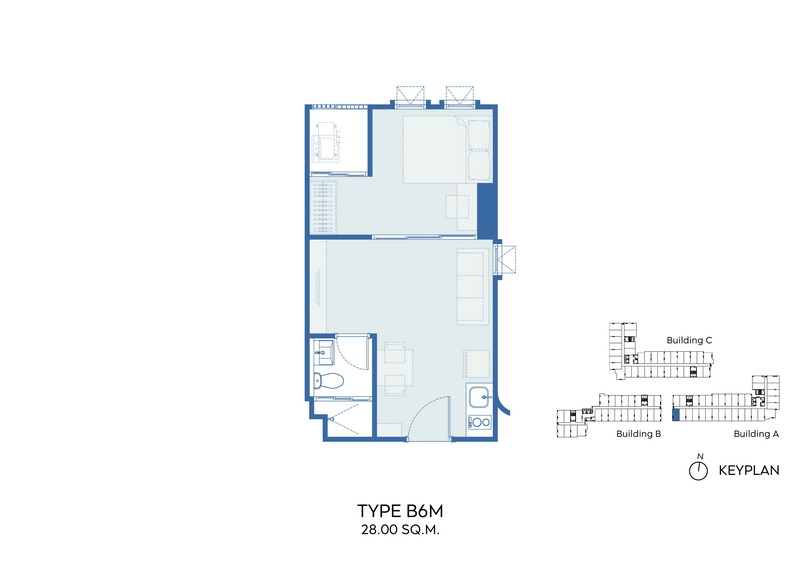 TYPE B6M 1 Bedroom ขนาด 28.00 ตร.ม.