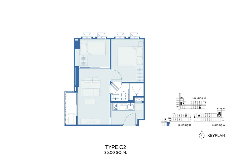 TYPE C2 1 Bed Plus ขนาด 35.00 ตร.ม.
