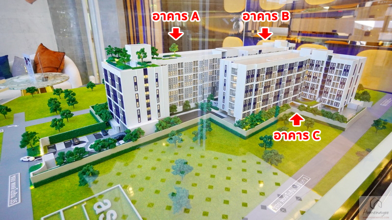 โมเดลโครงการ Aspire รัชโยธิน จะวางอาคาร A, B และ C ตามภาพ