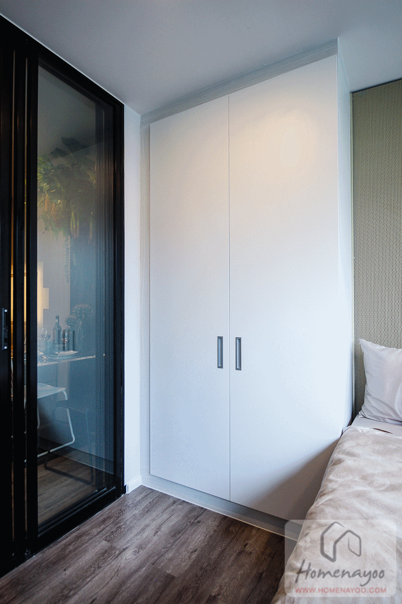 ส่วนฝั่งปลายเตียงจะมีตู้เสื้อผ้า Built – in มาให้ ของจริงได้ตามนี้