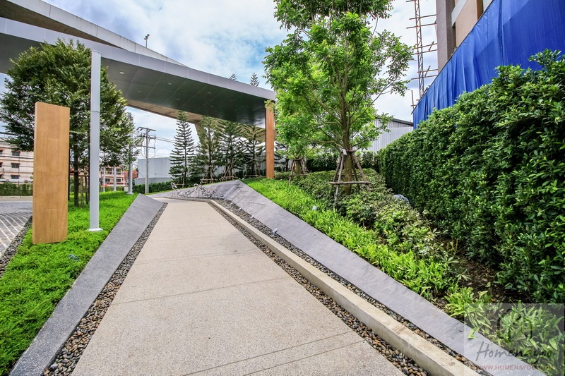 ถ่ายย้อนกลับมาดูภาพรวมกันค่ะ อย่างที่บอกไปข้างต้นว่าทางโครงการทำ Disabled Access Ramps เอาไว้ให้ จากในภาพจะสามารถเข็นรถผู้สูงอายุให้เชื่อมต่อกับได้รอบสวนเลย ไม่ใช่เฉพาะพื้นที่แบบที่โครงการอื่นทำนะคะ