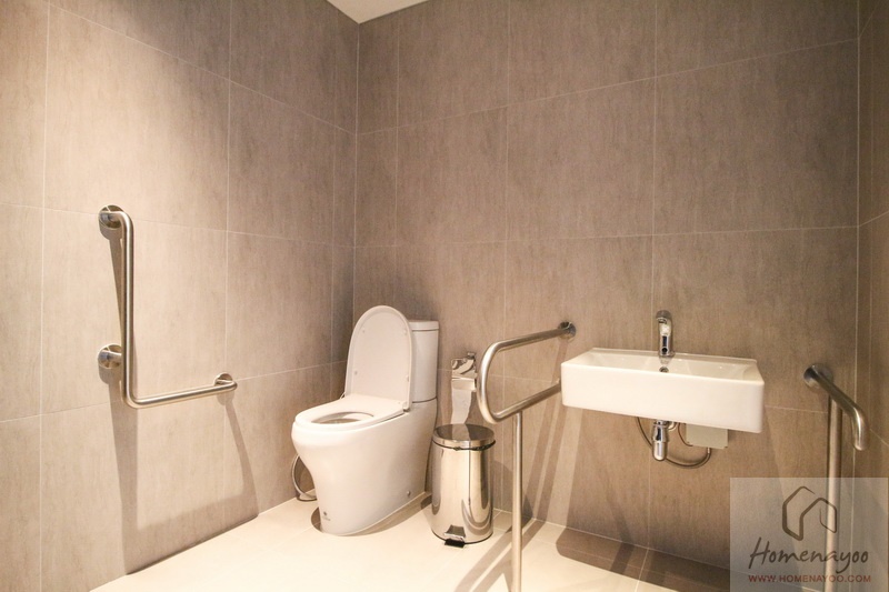 ถัดมาเป็นโถสุขภัณฑ์ มีการก่อผนังแยกส่วนไว้ให้ โดยโถสุขภัณฑ์ใช้เป็นระบบอัตโนมัติ ติดตั้งอุปกรณ์ต่าง ๆ ให้ครบชุดค่ะ