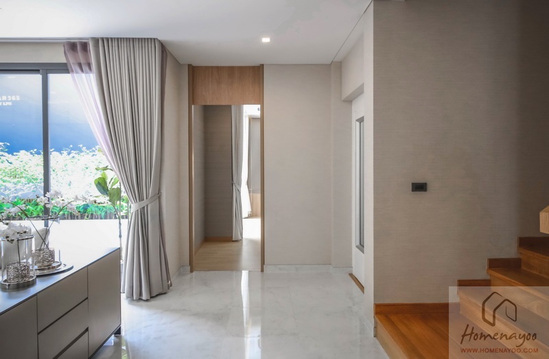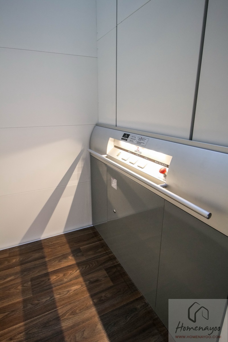 ตรงข้ามกับห้องอเนกประสงค์ฝั่งหน้าบ้าน ก็จะเป็นห้องนอน 2 ก่อนถึงห้องนอน 2 ก็จะเป็นประตูเชื่อมระเบียง และ ลิฟต์โดยสารนั่นเองค่ะ