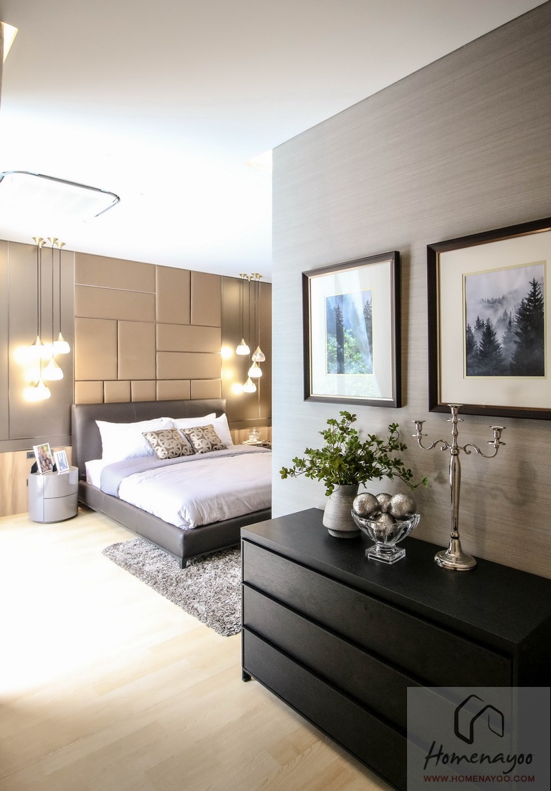 ข้างเตียงนอนจัดฟังก์ชั่นมาในรูปแบบเดียวกัน