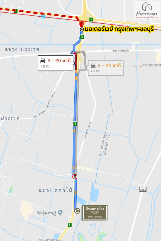 ภาพประกอบการเดินทาง เราเริ่มจากทางพิเศษบูรพาวิถี มุ่งหน้าไป ม.รามคำแหง 2 โดยใช้ทางออกที่ 7 บางแก้ว (ม.รามคำแหง 2)