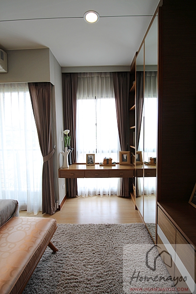 Built in โต๊ะเสื้อผ้ามาให้ฝั่งซ้ายและฝั่งขวาสูงจรดเพดานมาให้ดูเป็นไอเดีย แต่จริงๆถ้าอยู่กันสองคน วางตู้เสื้อผ้าตามแนวผนังกว้างๆของงห้องจะได้พื้นที่สำหรับเก็บเสื้อผ้ามากขึ้นเป็นเท่าตัวเลยค่ะ เพราะห้องค่อนข้างกว้างอยู่แล้ว