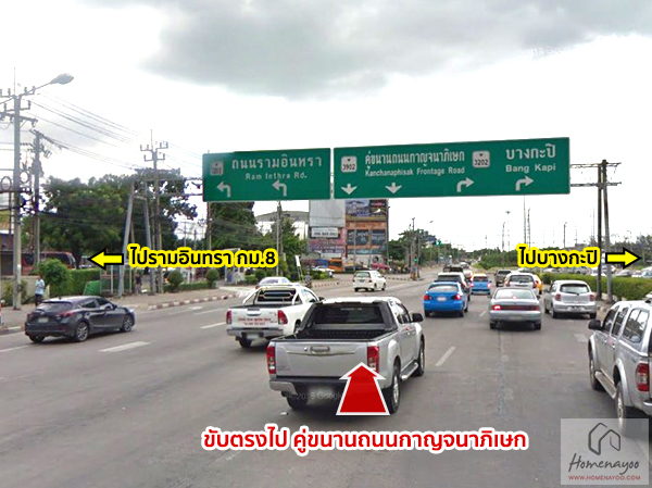 ผ่านสี่แยกนวมินทร์-นวลจันทร์ ให้ตรงไปตามป้ายคู่ขนาน ถ.กาญจนาภิเษกค่ะ
