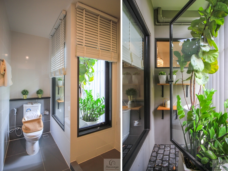 ในห้องน้ำจะมีช่องแสงขนาดใหญ่ และมีระเบียงเล็กๆไว้จัดสวนหรือไว้วางราวตากผ้าได้