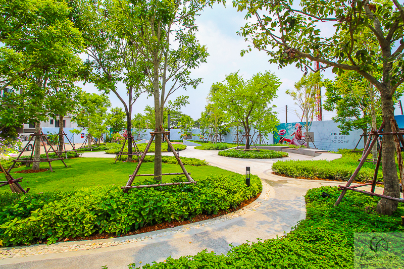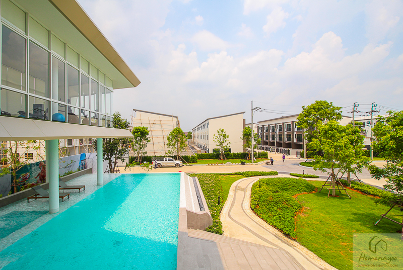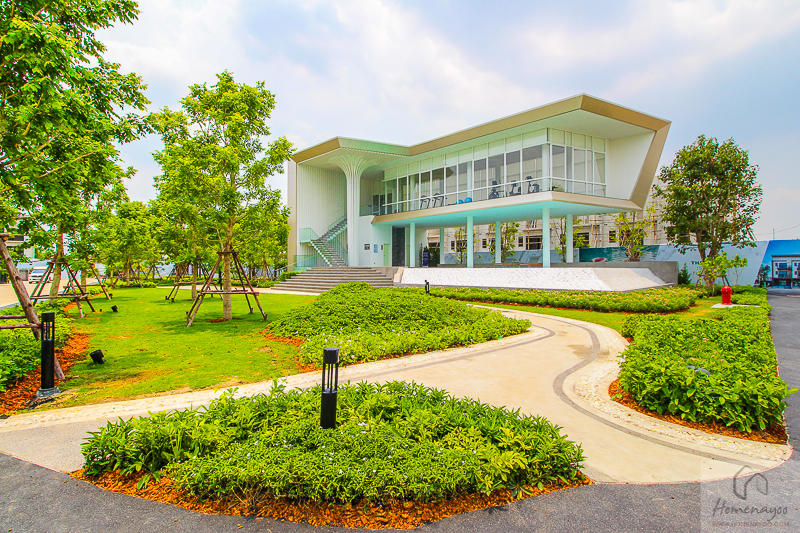 สาธารณูปโภค – ส่วนกลางที่นี่จะมี Club House 2 ชั้น ชั้นล่างเป็นสระว่ายน้ำกลางแจ้งขนาดออกกำลังได้ แบ่งสระเด็ก มีห้องน้ำแยกชายหญิง ที่ชั้น 2 จะเป็นห้องนิติบุคคล และห้องฟิตเนส วางเครื่องออกกำลังกายมาหลากหลาย รอบๆ Club House จะเป็นสวนตกแต่งมาได้ร่มรื่น ภายในสวนมีทั้งไม้ใหญ่และไม้พุ่ม มีสนามหญ้าโล่งๆไว้ทำกิจกรรมต่างๆพร้อมพื้นที่นั่งพักผ่อน และสนามเด็กเล่น ถนนหลักโครงการกว้าง 12 ม. ถนนซอยกว้าง 9 ม. ระบบรักษาความปลอดภัยมี รปภ. ตลอด 24 ชม. ร้ัวรอบโครงการสูง 3 ม. ประตูทางเข้าออกโครงการเป็นประตูเลื่อนอัตโนมัติ ใช้ระบบของ Katsan App แยกทางเข้าออก ตรงกลางเป็นป้อมยาม ติดตั้ง CCTV ที่ประตูทางเข้าและจุดสำคัญภายในโครงการ เพื่อความปลอดภัยของลูกบ้าน