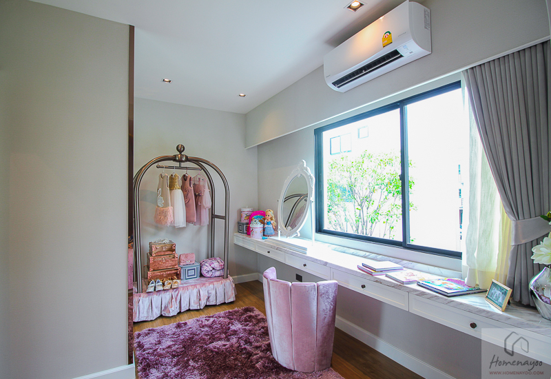 ระยะดูทีวีปลายเตียงประมาณ 4.67 ม. บ้านตัวอย่างทำเป็นส่วนแต่งตัวให้ดู