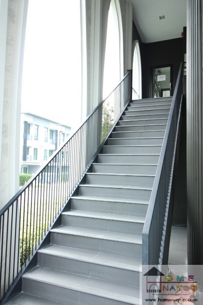 บันไดขึ้นชั้นบน ไม่มีราวจับให้ค่ะ เนื่องจากทั้งสองฝั่ง จะมีผนังขนาบกันขึ้นไปจนถึงโถงพักบันได้ค่ะ