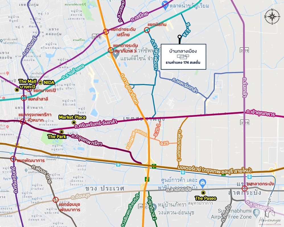 ถนนรามคำแหง > กลับรถ > ซอยรามคำแหง 174 > บ้านกลางเมือง รามคำแหง 174 สเตชั่น
