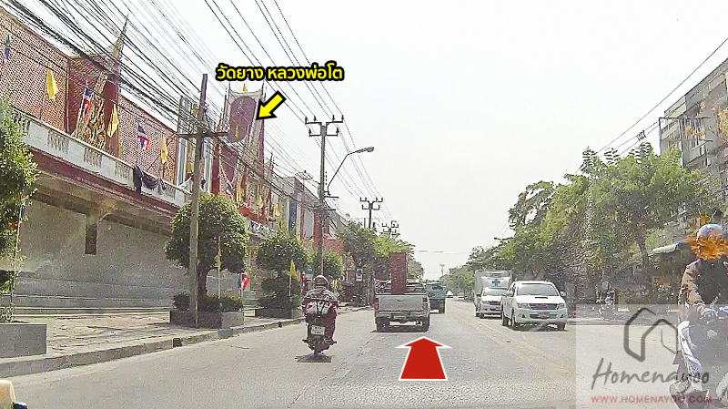 ขับตรงมาเรื่อยๆผ่านวัดยางหลวงพ่อโตทางซ้ายมือ