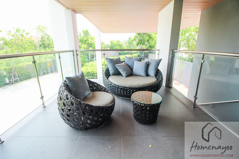 นอกจากนั้นตรงระเบียงจะมีติดตั้งไฟดาวน์ไลท์ให้ 1 ดวง เพื่อให้แสงสว่างในเวลากลางคืน