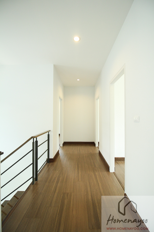 กลับเข้ามาในส่วนโถงบันได เราไปดูในส่วนของห้องนอนรองทั้ง 2 ห้องกันต่อ โดยพื้นที่โถงส่วนนี้เราจะเห็นว่ามีขนาดค่อนข้างกว้าง จึงสามารถที่จะติดตั้งตู้เก็บของที่ใช้ร่วมกันภายนอกได้อีกนะคะ