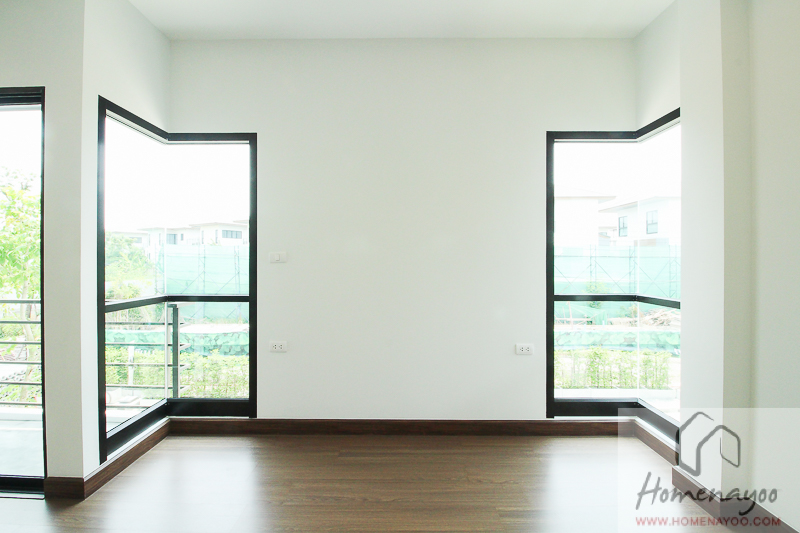 ถัดมาดูส่วนของห้องนอนกันต่อ พื้นที่ห้องนอนจะได้ช่องแสงมาค่อนข้างเยอะ และเป็นบานค่อนข้างใหญ่ โดยจะได้เป็นหน้าต่างบานเลื่อน ผสมบานฟิกซ์ 2 จุดและหน้าต่างบานกระทุ้งอีก 1 บาน