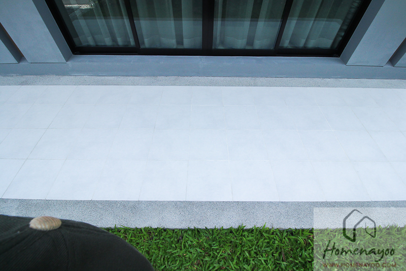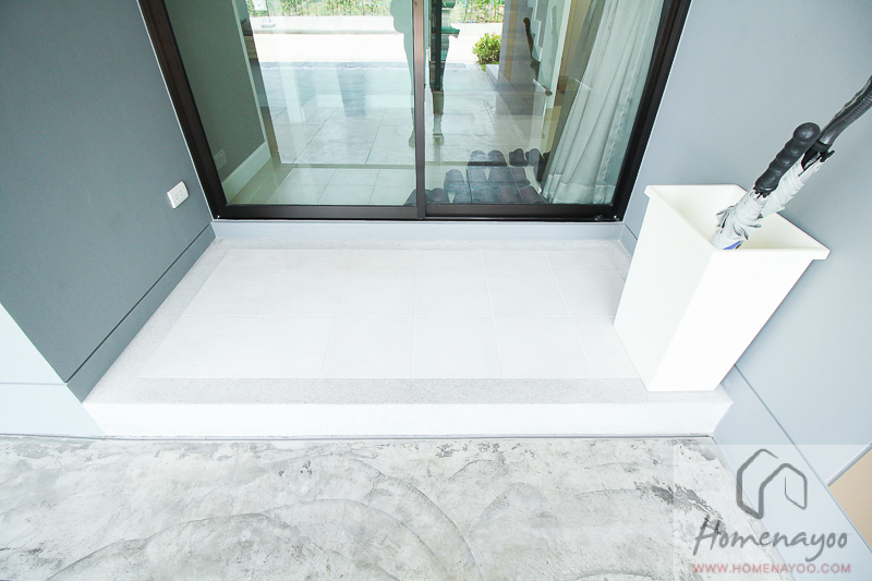 ระเบียงภายนอกจะลดระดับพื้นลงไปประมาณ 10 เซนติเมตร พื้นระเบียงจะได้เป็นซีเมนต์ฉาบเรียบ