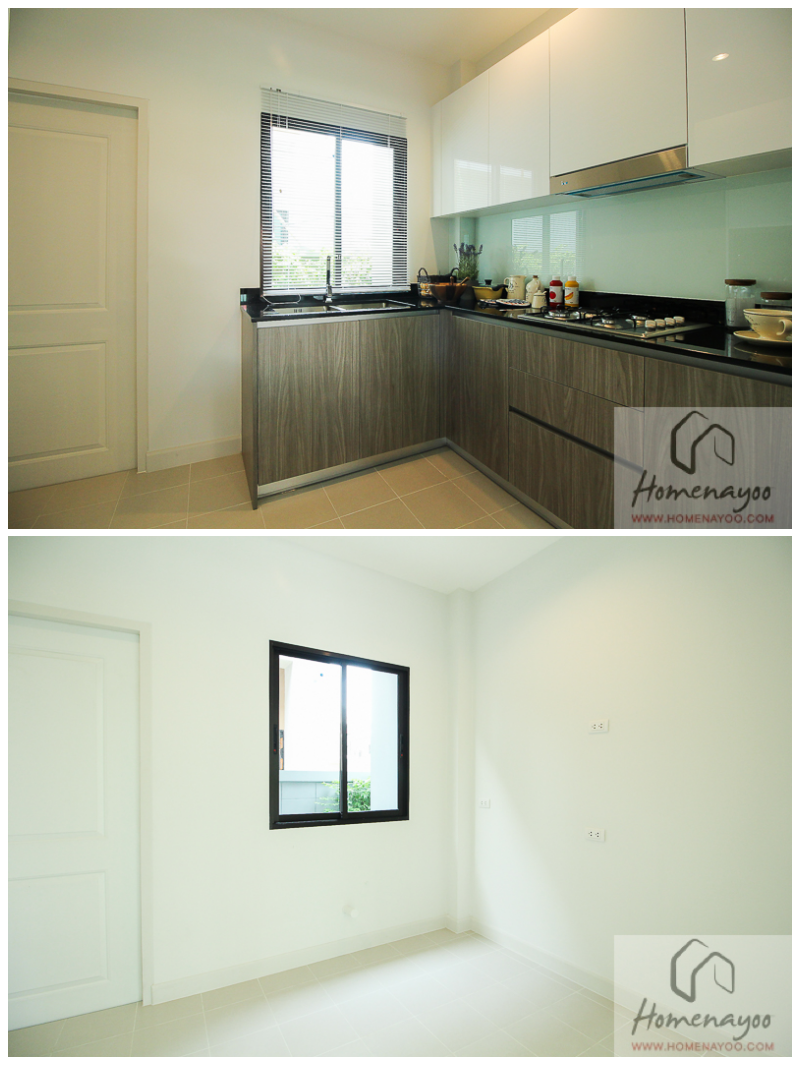 แบบบ้าน : แบบบ้านที่เราไปดูวันนี้เป็นบ้าน Type D ของเฟส 2 พื้นที่ใช้สอย 228 กม. บนที่ดินเริ่มต้น 54 ตร.วา. ฟังก์ชั่นภายในบ้าน 4 ห้องนอน 4 ห้องน้ำ 1 ห้องรับแขก และที่จอดรถ 2 คัน การจัดวางฟังก์ชั่นภายในบ้านโดยรวมใช้งานได้สะดวก ที่ชั้น 1 มีห้องครัวไทยแยก เป็นครัวขนาดกลางๆ พอให้คนในครอบครัวเข้าไปช่วยกันทำกับข้าวได้