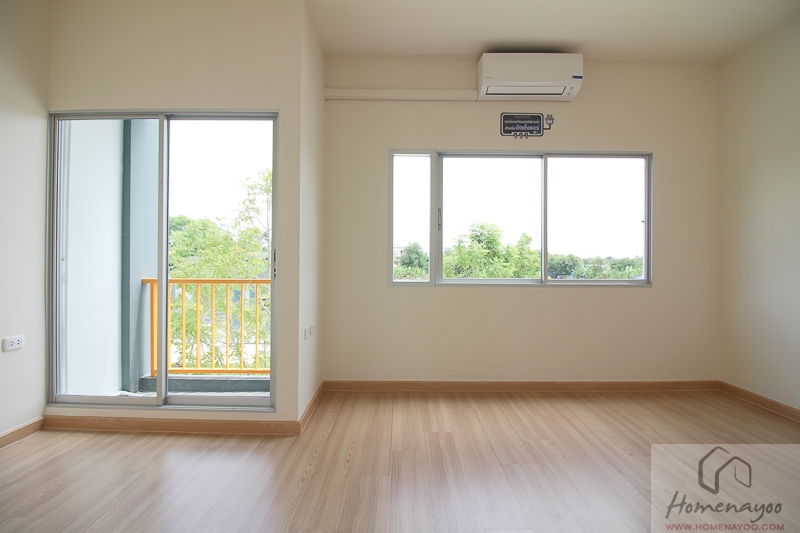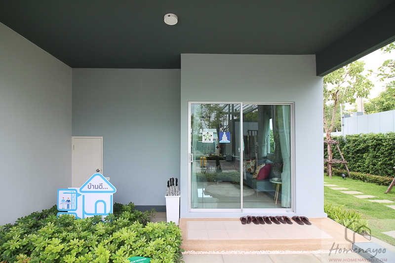 ภาพจากทางบ้านมาตรฐาน ที่โซนนี้จะมีหน้าต่างบานเลื่อนคู่บานใหญ่มาเป็นช่องแสงให้กับห้อง