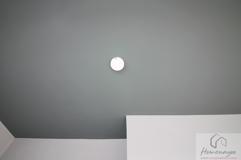 ไฟในห้องน้ำจะใช้เป็นดวงโคมดาวน์ไลท์ และเนื่องจากภายในห้องน้ำจะไม่มีหน้าต่างระบายอากาศมาให้ บนฝ้าเพดานจึงติดพัดลมดูดอากาศมาให้เพิ่มด้วย