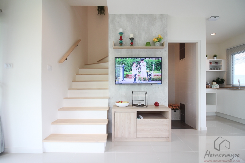 ขึ้นบันไดไปดูที่ชั้น 2 กันต่อเลย ตัวโถงบันไดจะกว้าง 90 ซม.ได้ระยะมาตรฐานพอดี