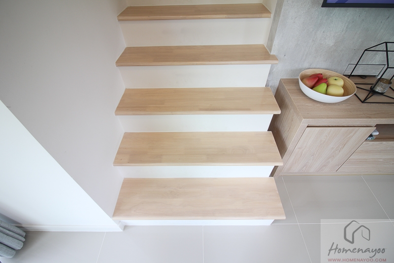 บันไดจะเป็นบันไดทึบ วัสดุลูกนอนเป็นไม้สำเร็จรูป